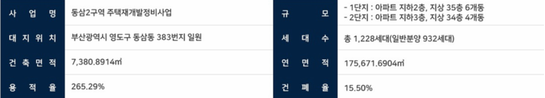 사업명은 동삼2구역 재개발정비사업입니다.
