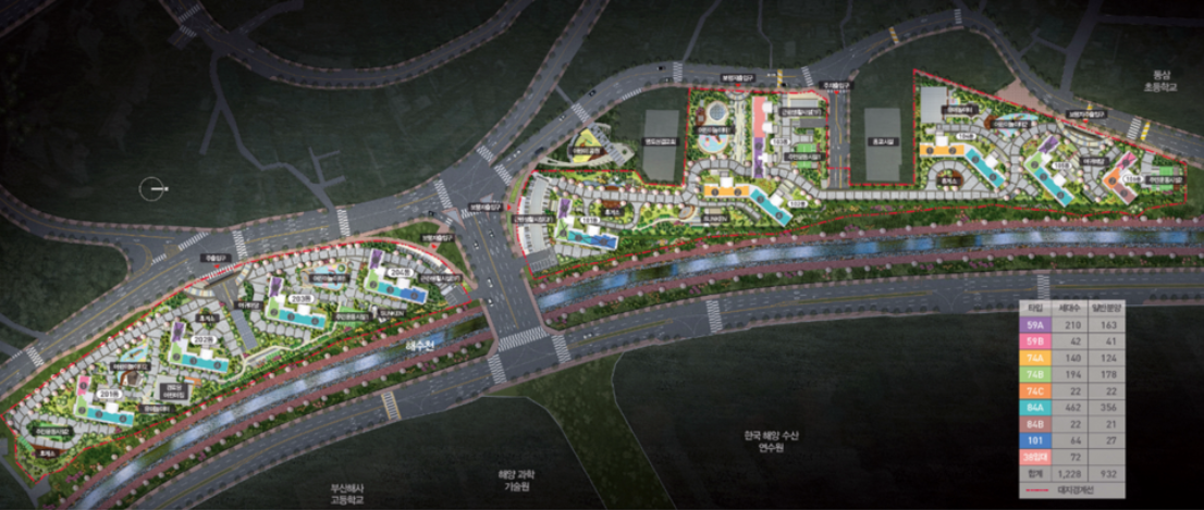 그리고 단지 라인을 따라 해수천 수변공원 등 쾌적한 생활환경을 갖추고 있는