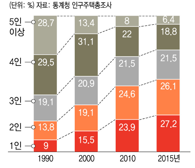 앞으로도 1인, 2인가구들의 %는 더욱더 늘어날 것으로 보여집니다.