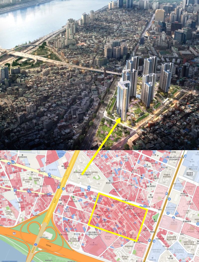 트리마제, 아크로포레스트, 겔러리아포레와 같은 고급 아파트들이 성수 한강변 수십동이 들어서는 모습을 생각만 해도 이 지역이 얼마나 바뀔지 상상조차 되지 않을 정도입니다.